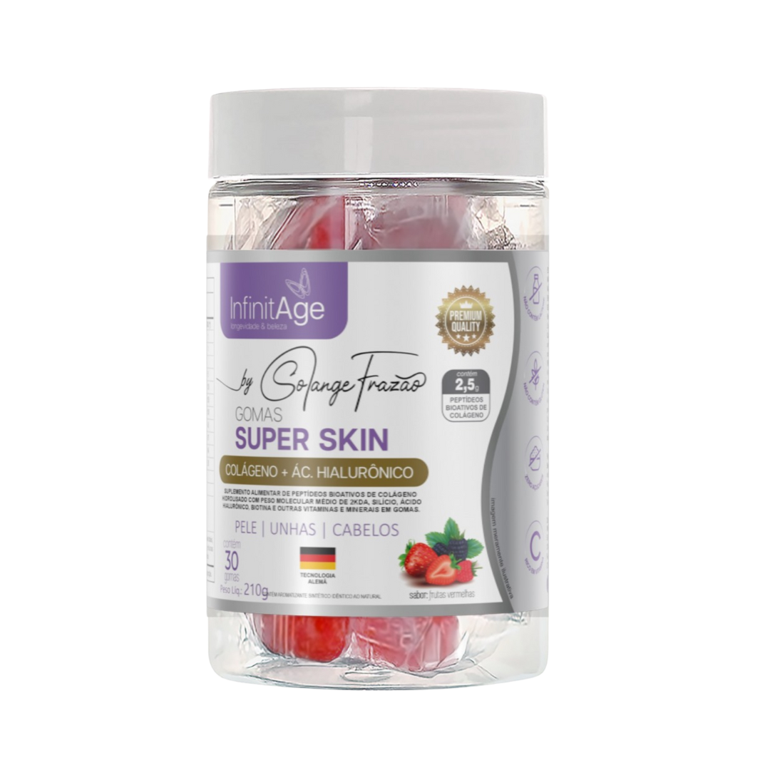 As gomas vêm embaladas em saquinhos plásticos individuais. Isso garante mais praticidade, higiene e preservação da qualidade do produto. Essa embalagem evita o contato direto com o ar e a umidade, mantendo a textura e a eficácia dos ingredientes ativos, como colágeno Verisol e ácido hialurônico.